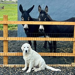 Ripton, inmiddels zestien jaar oud, heeft jarenlang wél op onze boerderij in Ierland gewoond. De politie vond hem in 2015 zwervend langs de snelweg, in de vrieskou. Bij ons herstelde hij en bleek hij al snel over een zachtaardig en vriendelijk karakter te beschikken. Later vingen wij de nu twaalfjarige Henley op, ook al zo’n lieve ezel. Geen wonder dat de twee dikke maatjes werden!